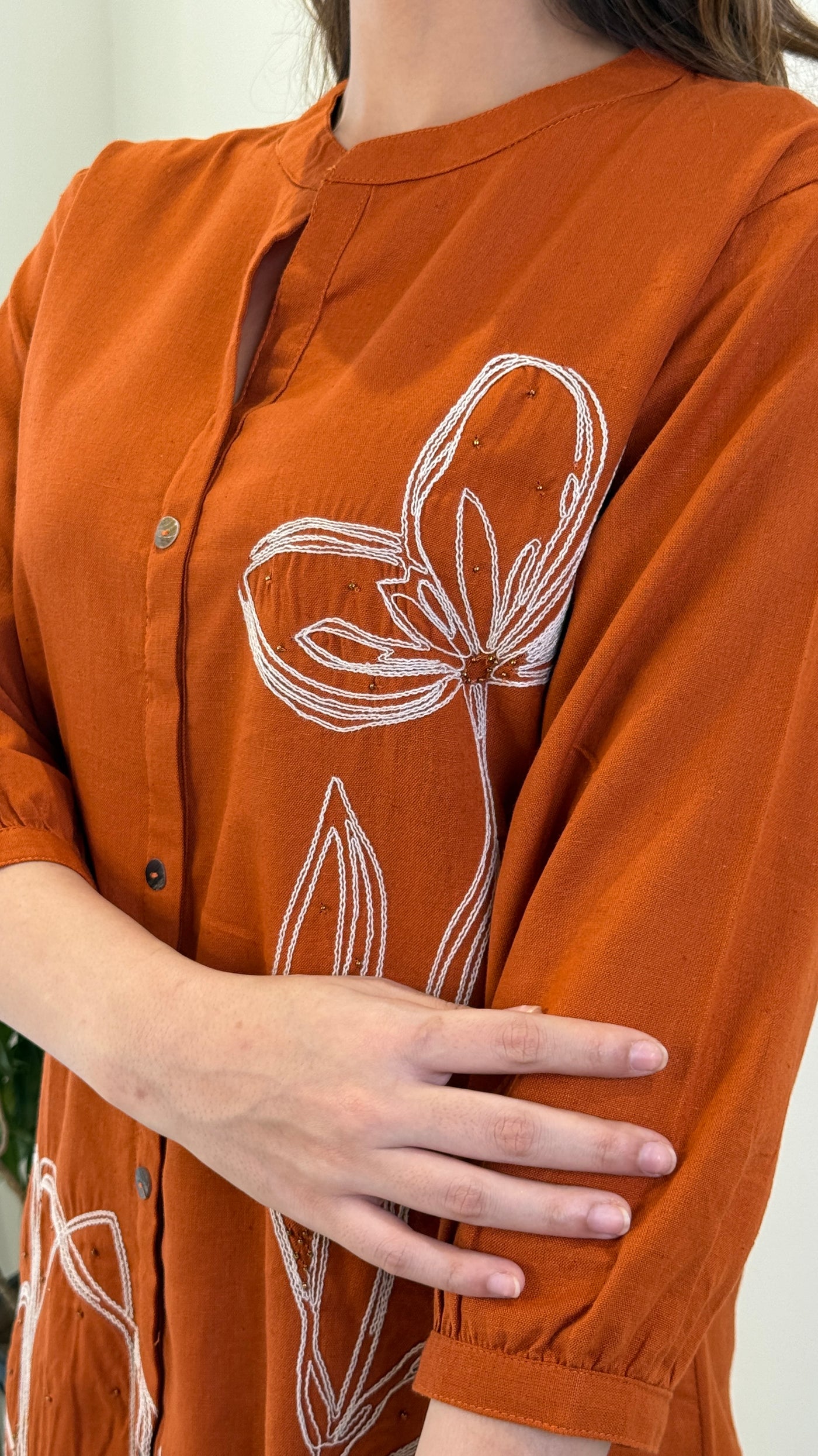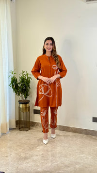 Details: Pure Cotton Cord Set With Threadwork Detailing On The Top and Pants. Must Have For Comfy Fit and Look.