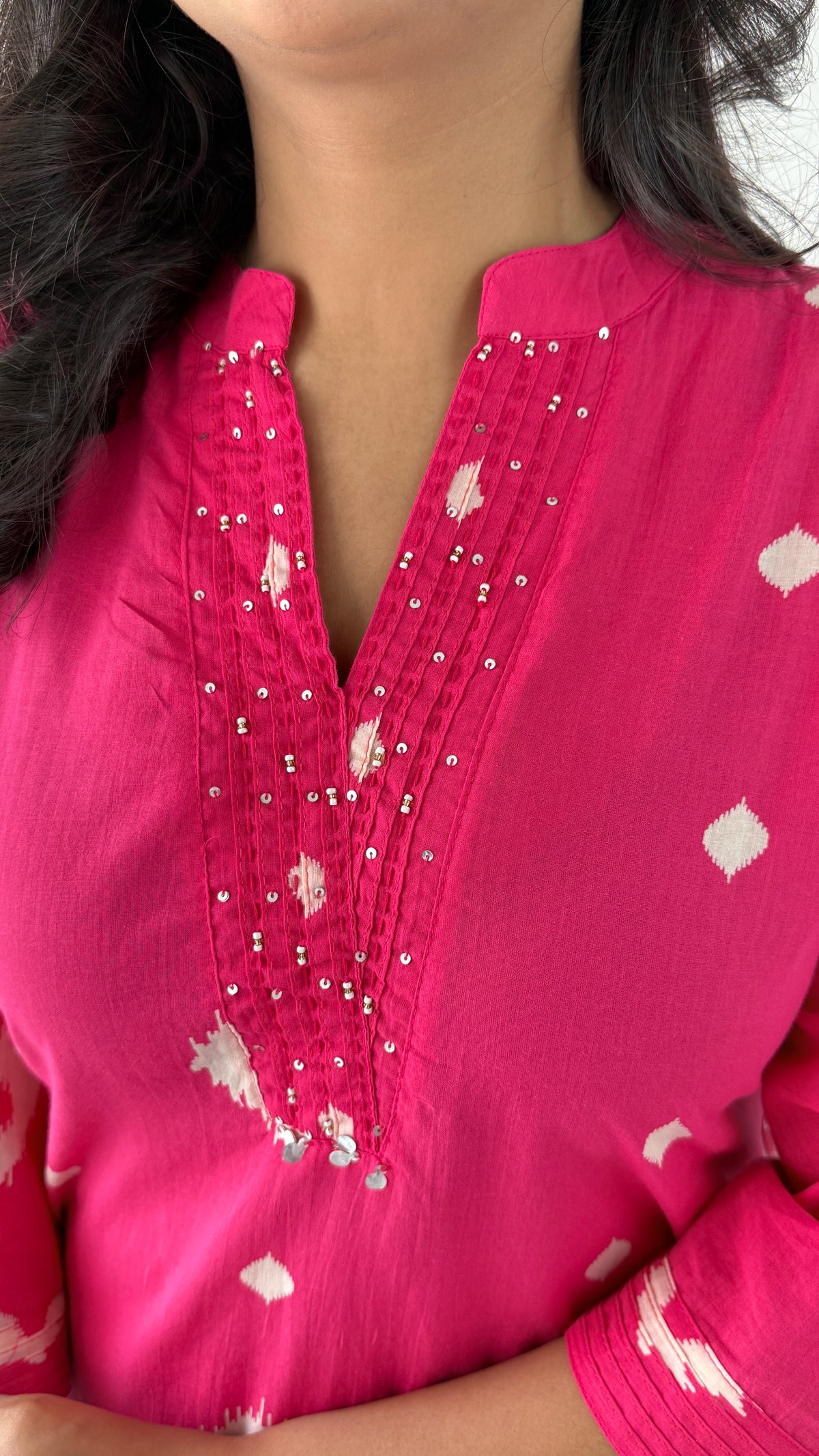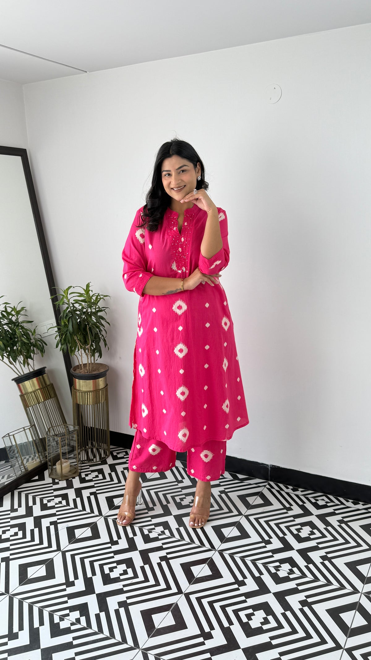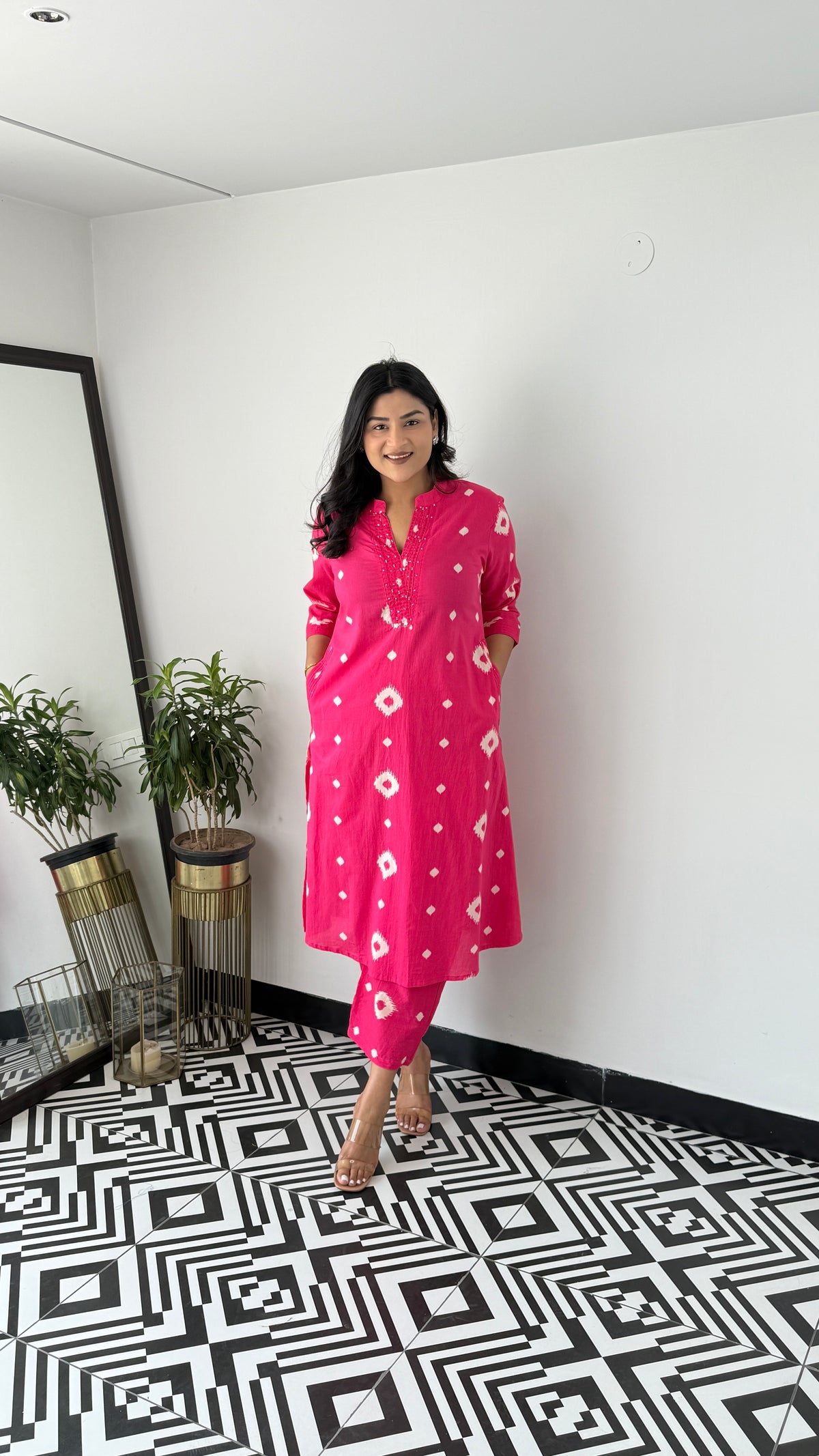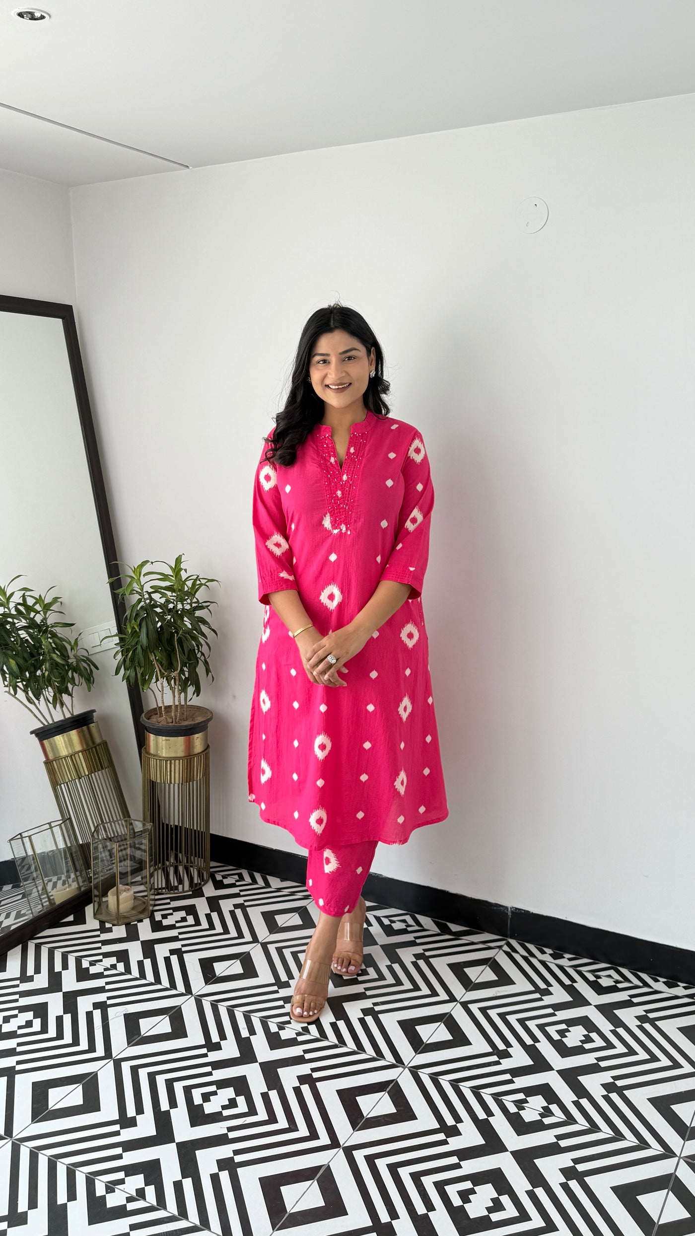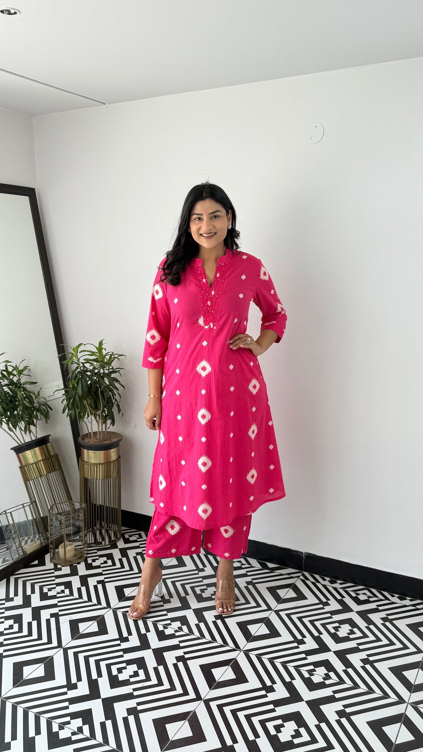 Details: Pure Cotton A-line Kurta Pants With Minimal Handwork Detailing On The Neckline.
