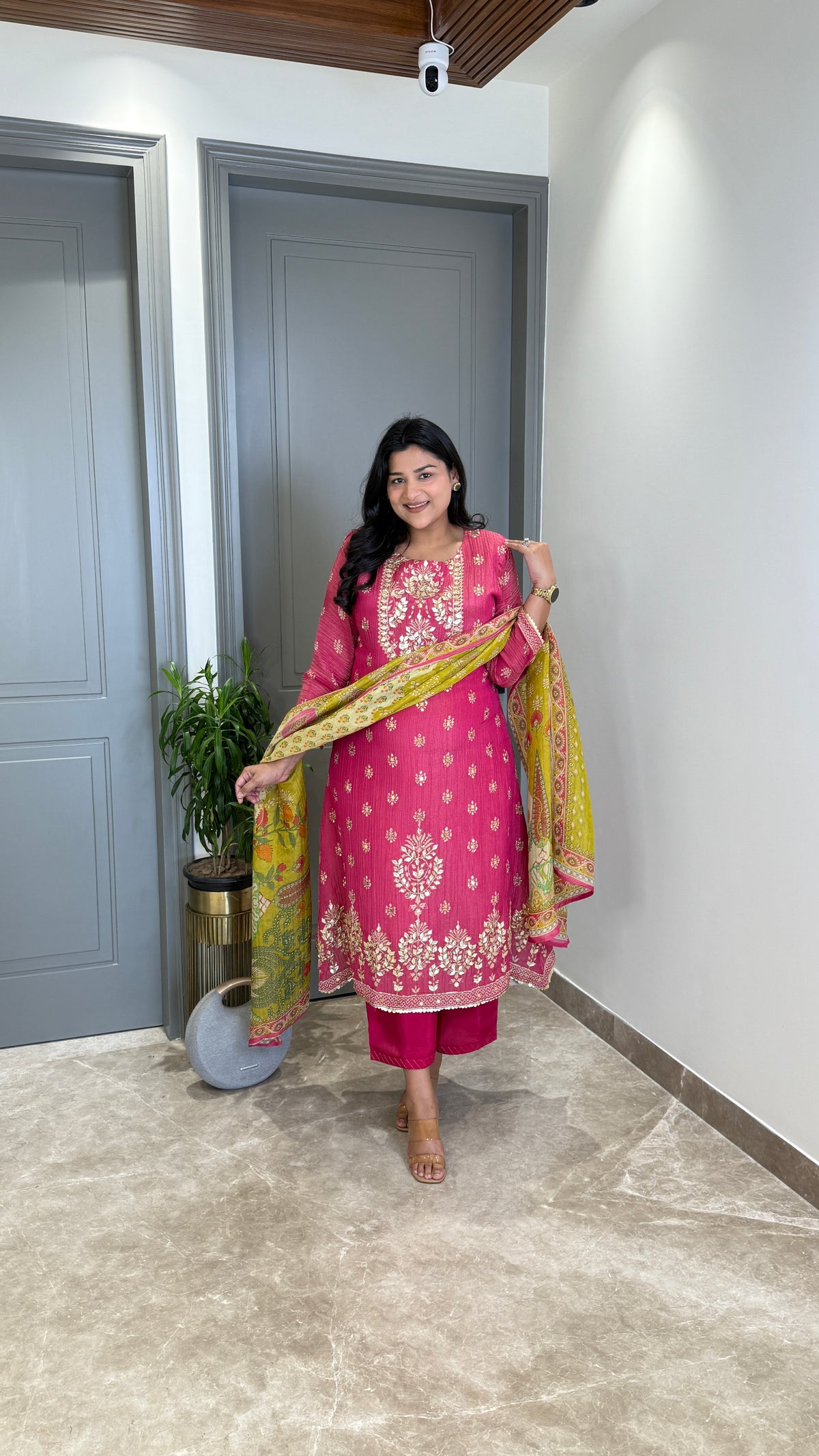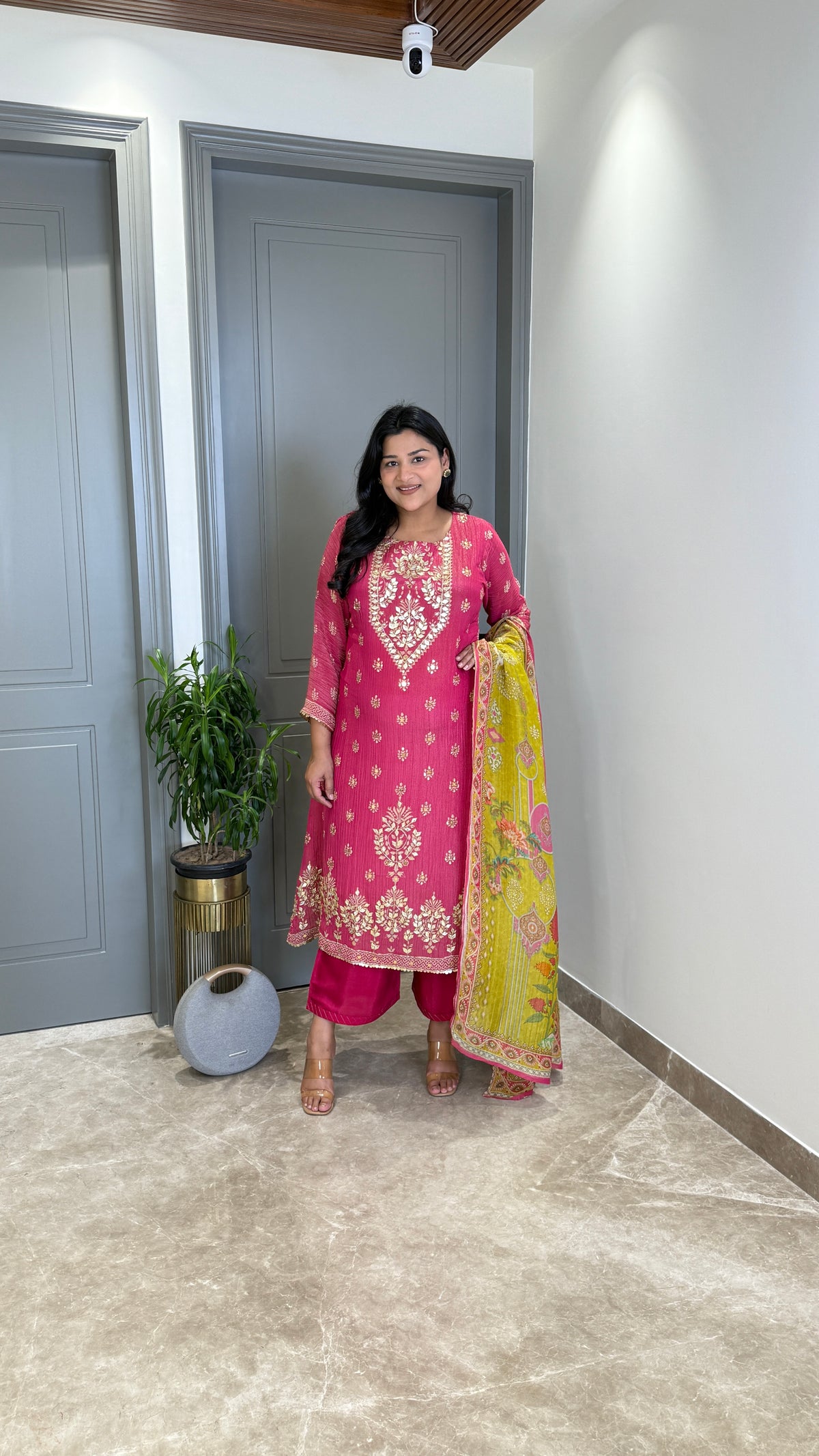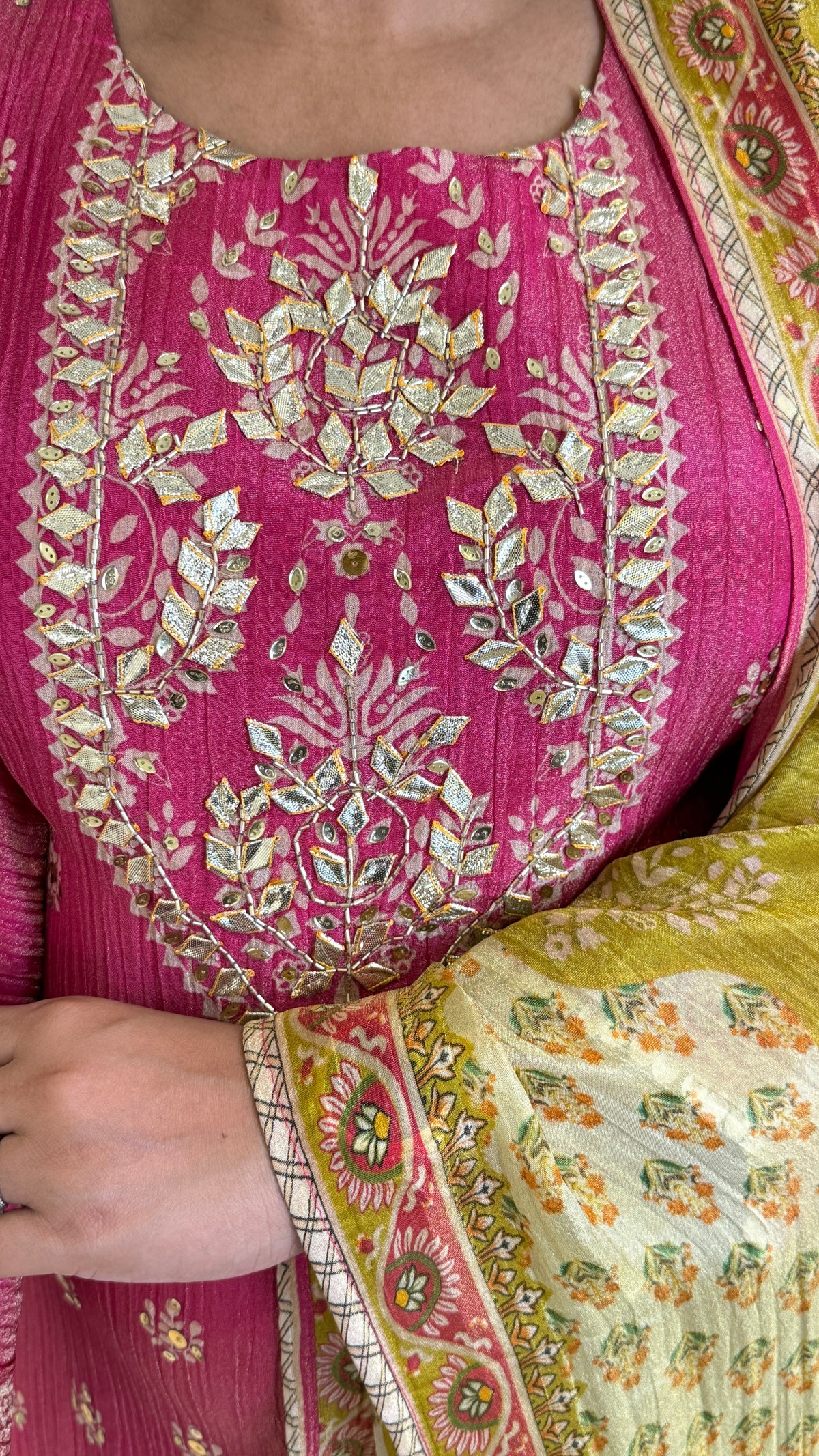 Details: Crushed Tissue With Gota Patti Detailing All Over The Suit. Best Suitable For Festive Season.