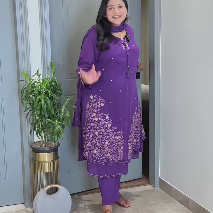 Purple Threadwork Jaal Suit Set