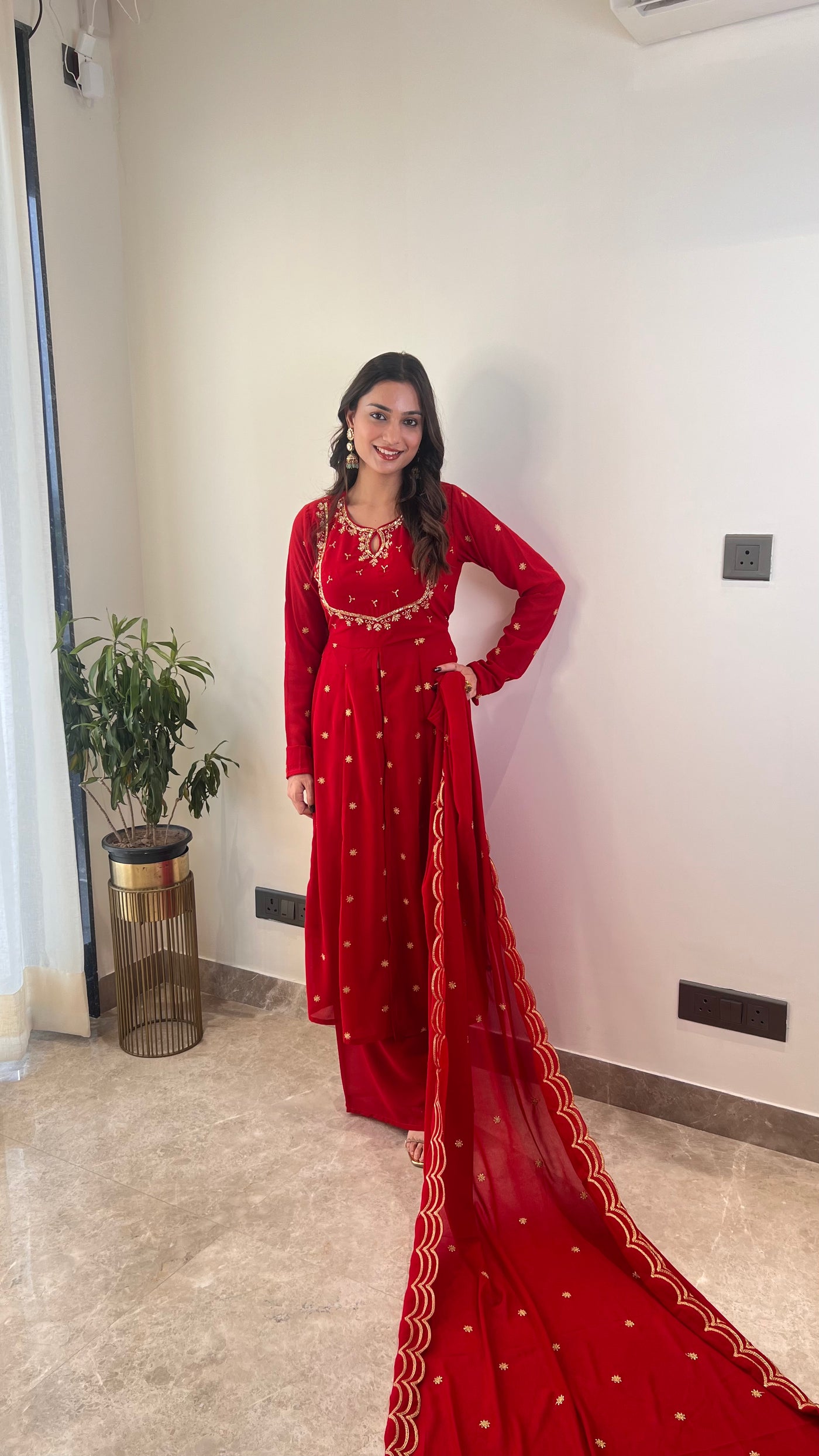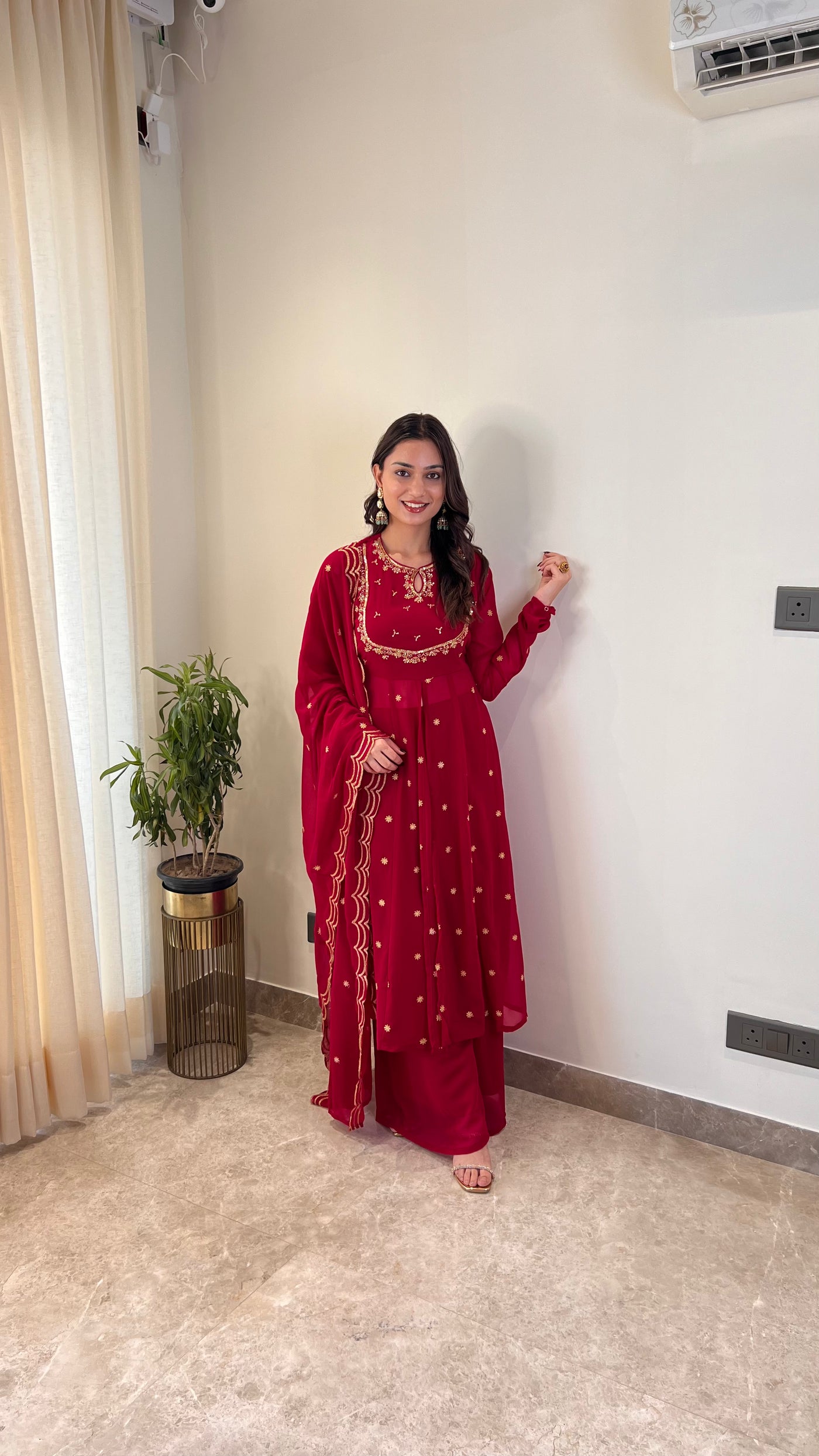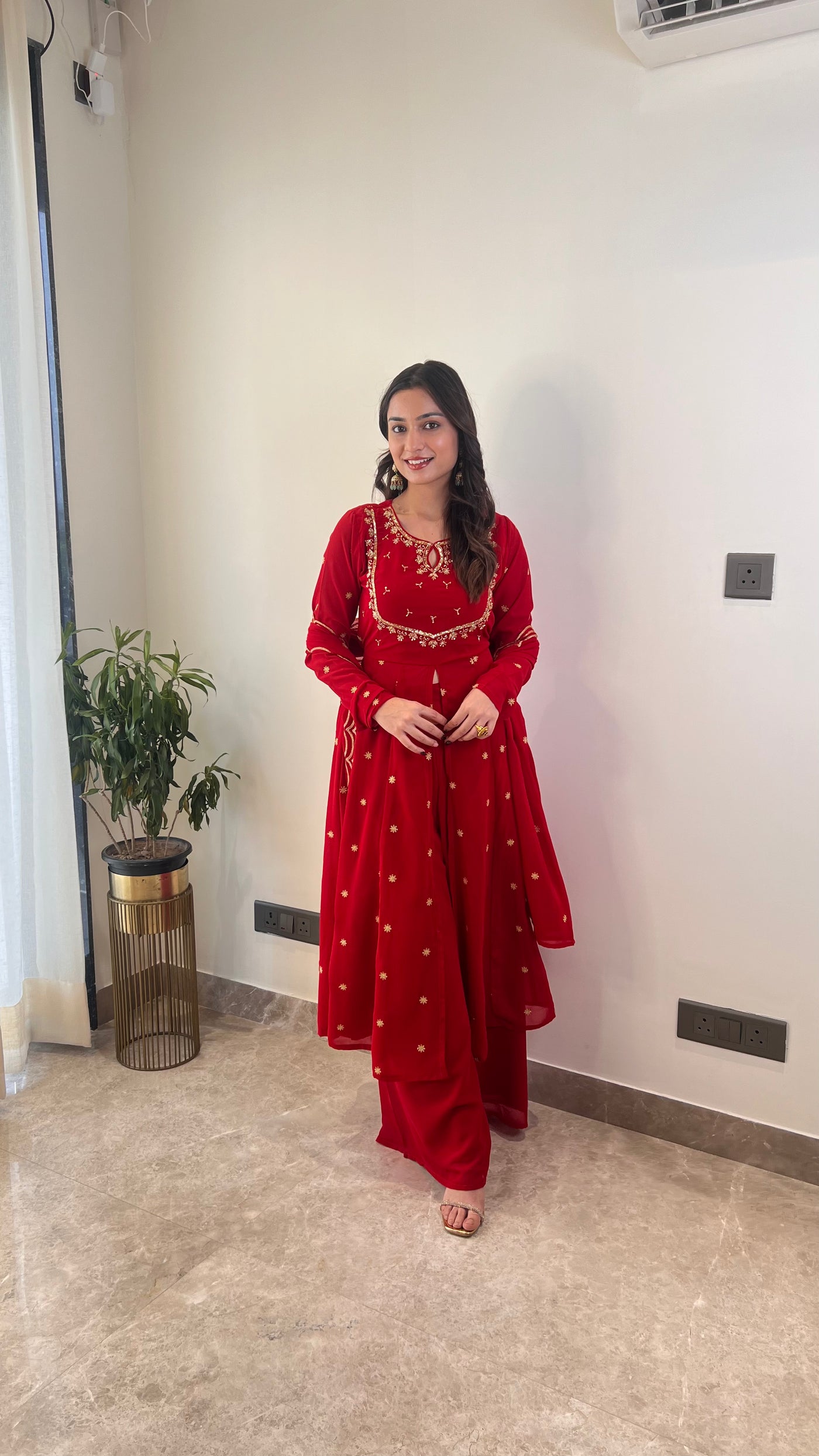 Details: Georget Suit Set With Handwork Dabka Detailing all Over The Kurta and Scalping Dupata.
