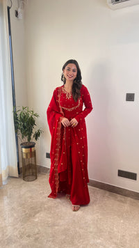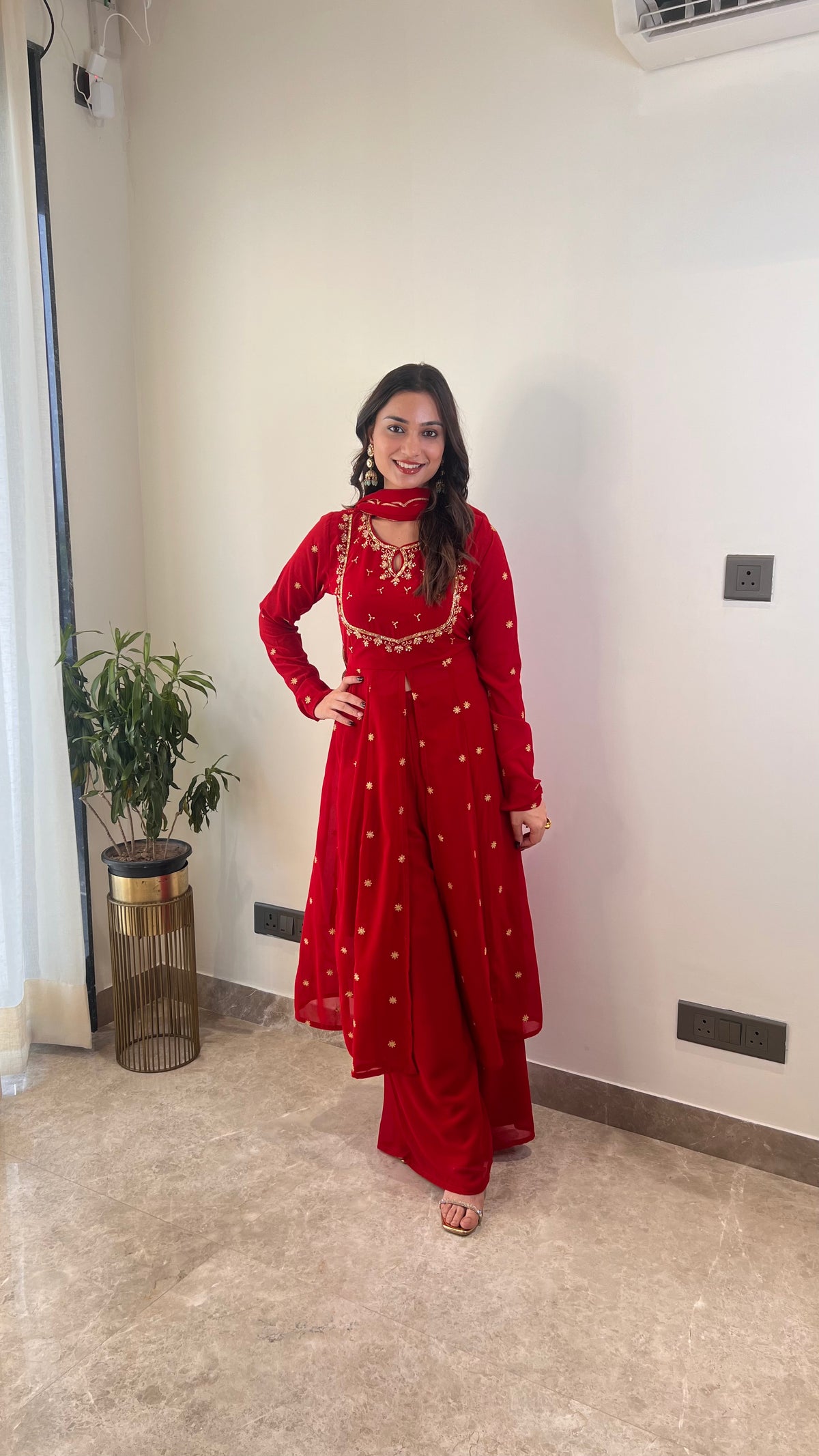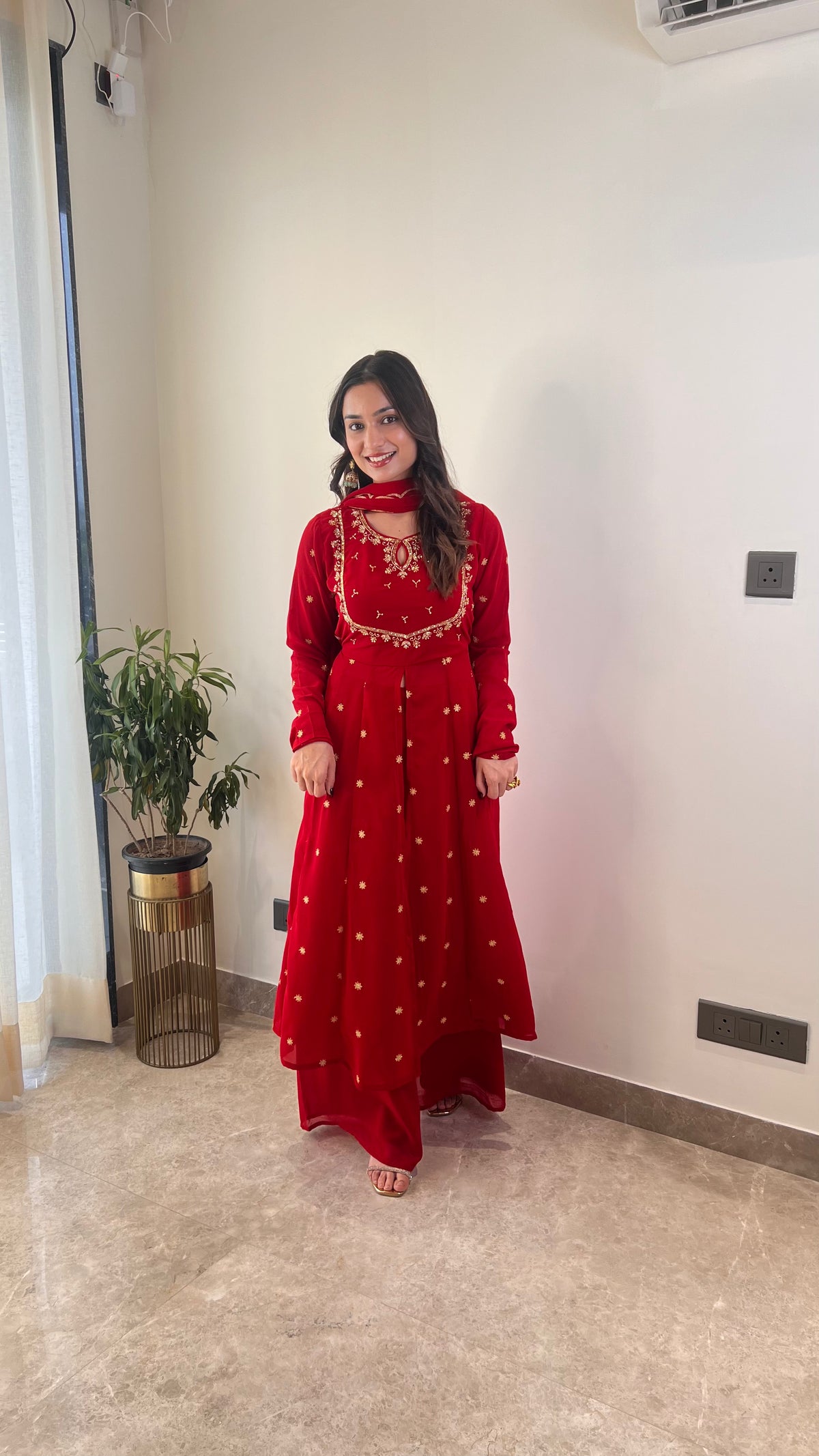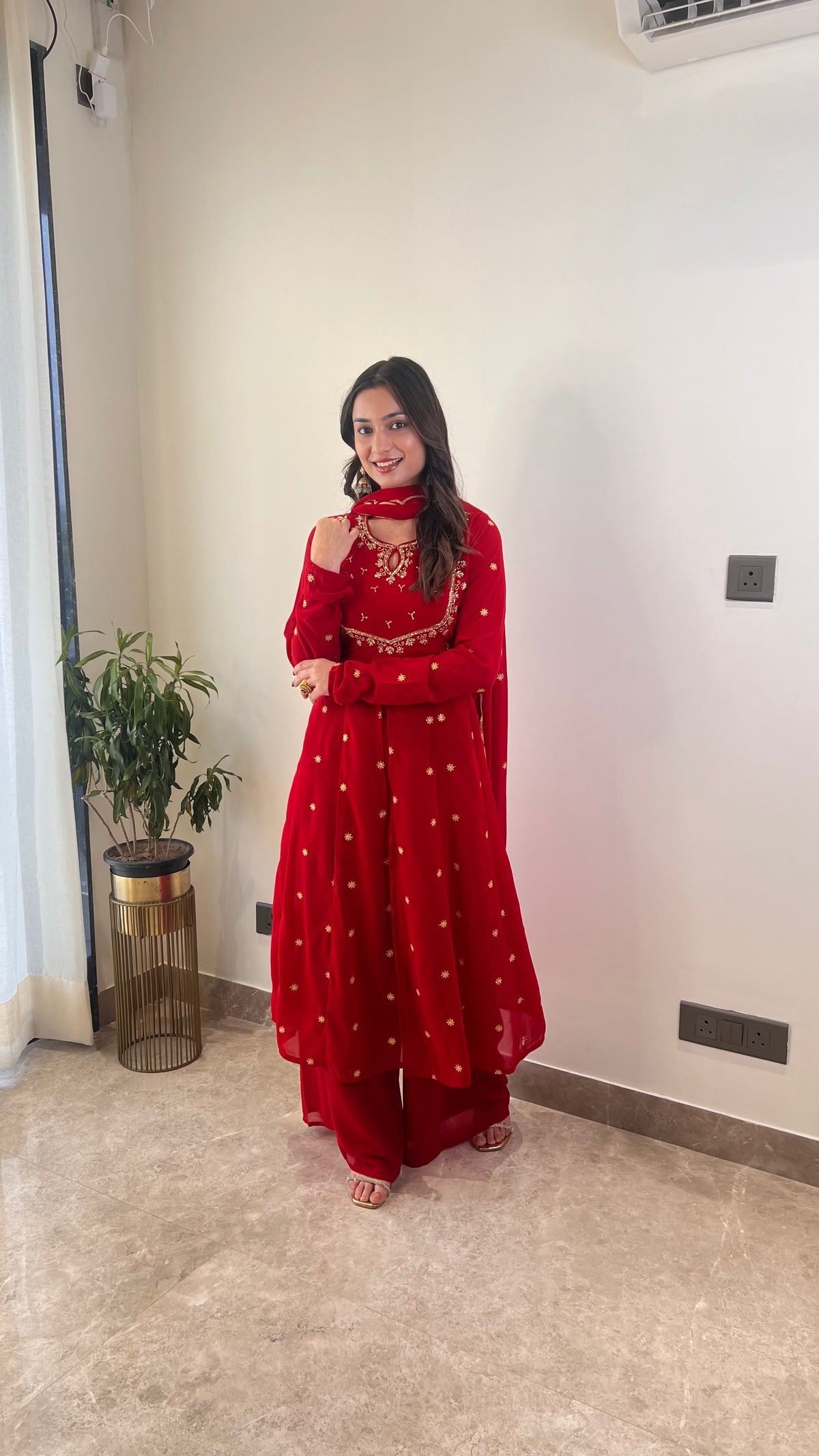Details: Georget Suit Set With Handwork Dabka Detailing all Over The Kurta and Scalping Dupata.