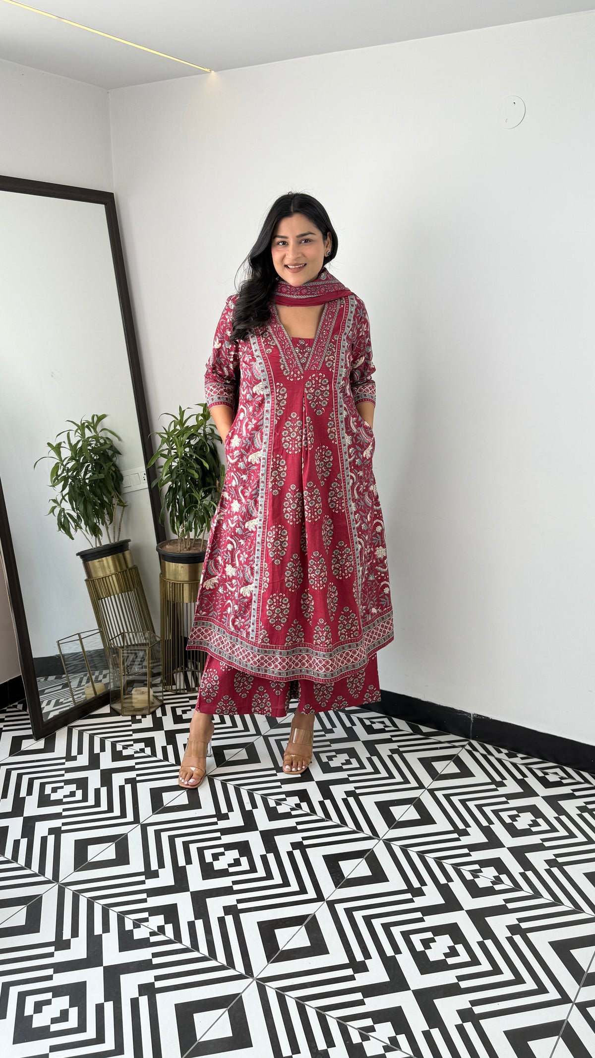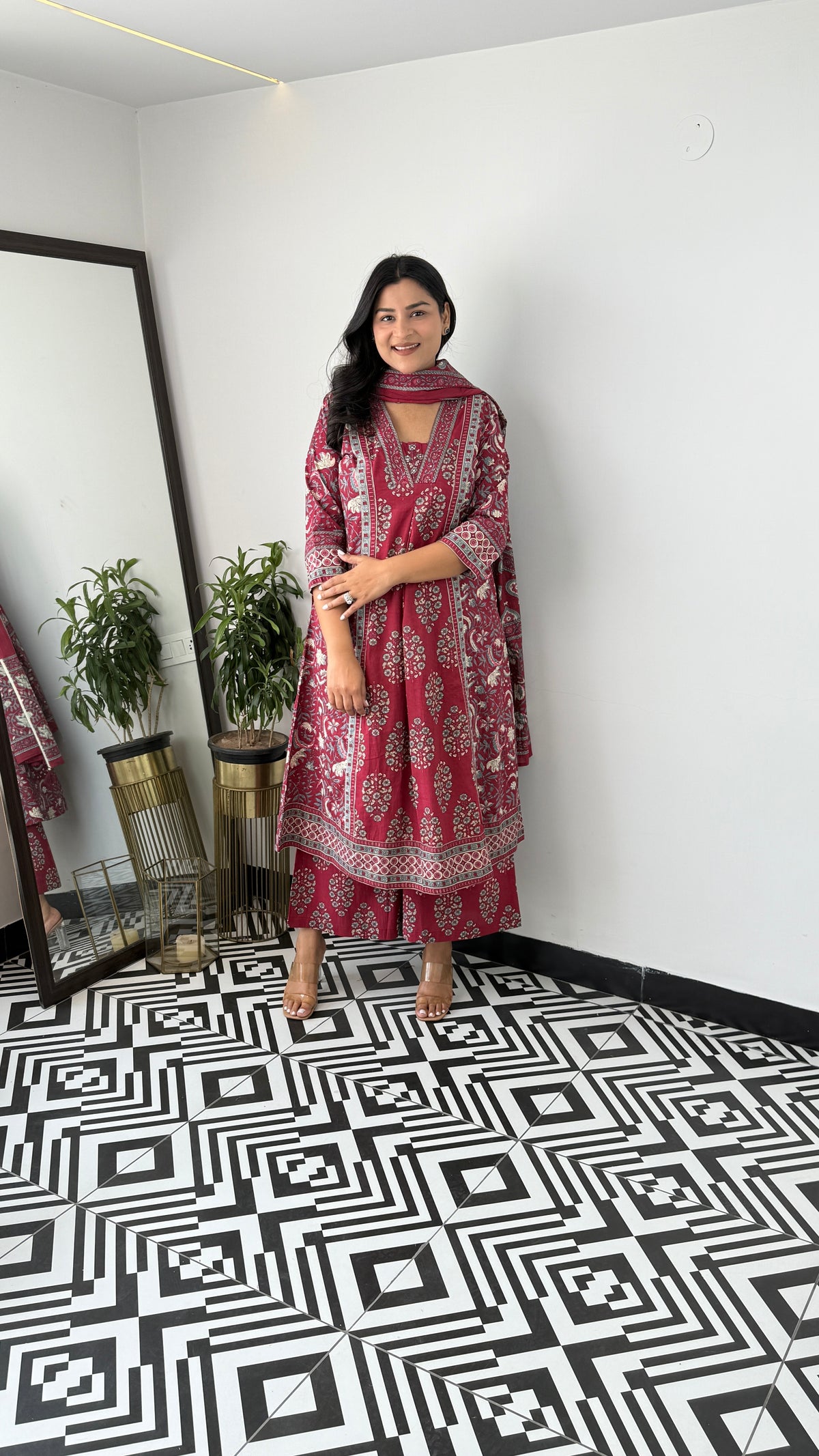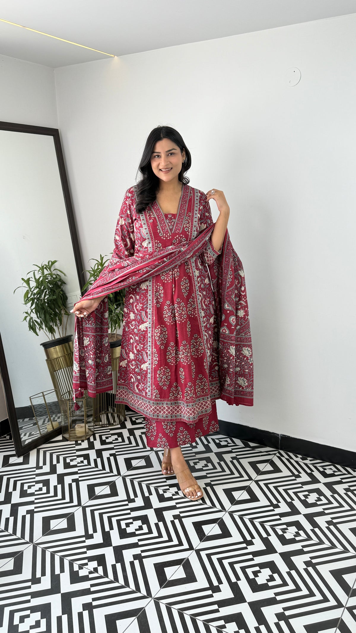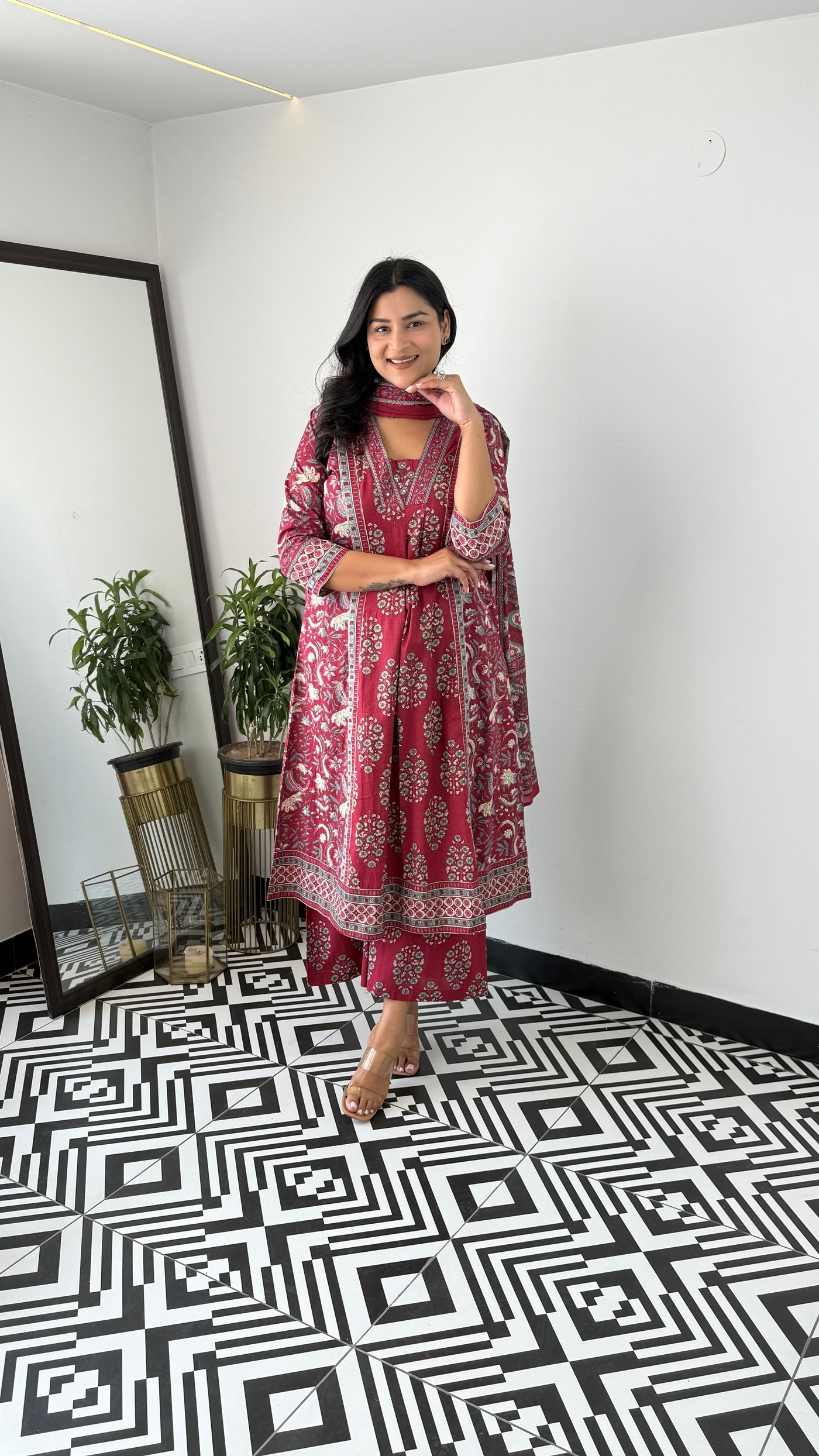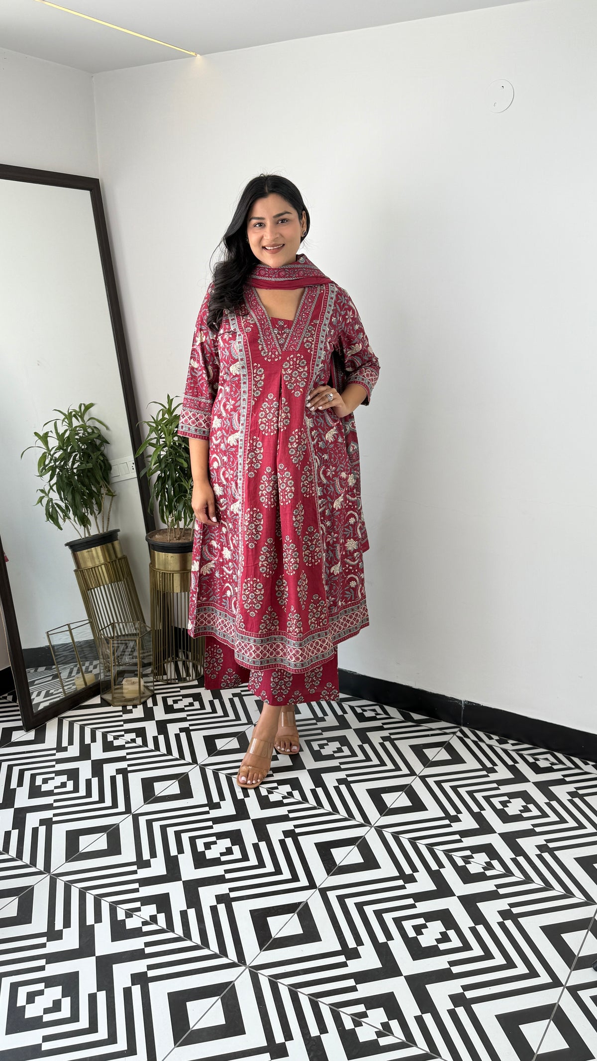 Details: Pure Cotton V-Neck Suit In Beautiful Jaipuri Print.